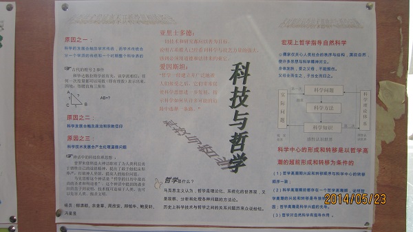 而如今,在栀子花即将绽放之际,在又一个“考试季”来临之际,一中人又迎来了自己的“校园科技周”这个充满创造力的“轻负高质之节日”!无锡一中各个教研组纷纷立足于自己的学科特色,进行创新实践。政治教研组既秉持了自己的传统,又结合了创新尝试,为无锡一中的“校园科技周”添上了浓墨重彩的一笔!政治教研组从形式上秉持了传统,以图文并茂的小报来展示学生的学科素养,在内容上结合十八大、十八届三中全会以来的国家、社会、公民个人层面的政策导向来思考如今的社会问题,着重探讨科技与经济、政治、文化、哲学等领域的联系,并针对出现的问题从学科知识的角度给出建议。