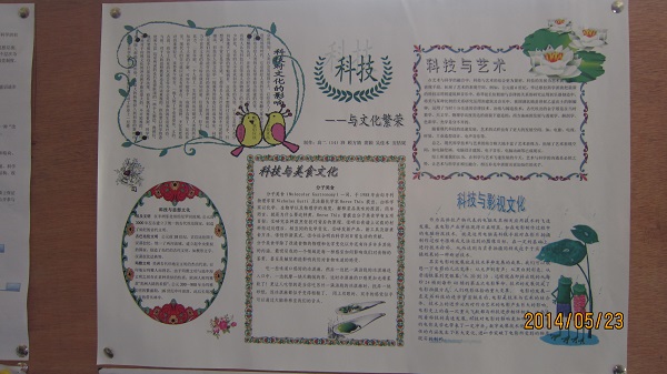 此次活动,参与主体为高一年级的全体学生和高二年级选修班的学生。在小报的创作中,学生一直保持着高涨的积极性,并展示出“绘声绘色”的创造性! 两个年级的同学,在小报内容的切入点上稍有不同。高一年级主要以“科技与经济、政治”为主,高二年级选修班以“科技与哲学、文化”为主,这种差异化选择主要是因为两个年级学生的学科知识水平有些许不同。学生们创作出来的小报,版面设计合理,文字阐释有深度、有力度,配以精致美观的图画处处彰显了学生较深厚的人文底蕴和美术功底!