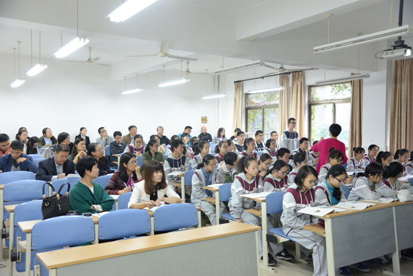 为传承我校“轻负高质”的教学特色,探索与时俱进的高品质的课堂教学方法,加强与兄弟学校的交流,创设学校—家庭—社会一体化的育人氛围,我校在2016年10月28日举行了以“智慧涵养生命 高校促动生成”为主题的对外公开课暨校园开放日活动。全校师生踊跃参与其中。在开放日当天,政治学科组开设了两节高质量的高二选修班的哲学新授课。