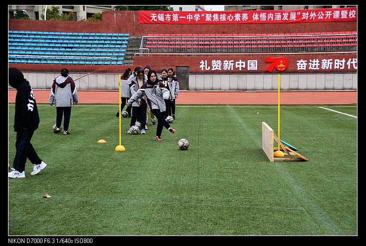 我校是老牌足球特色学校,足球是选项教学的重头戏,韩俊善、蒋春潮、张榕佳三位足球教练以三师会课的形式在足球场展示了一节主题为《踢墙式二过一》的足球课。场地布置科学,讲解示范清晰,基本功扎实过硬,学生的学习氛围浓烈,三位老师密切配合有的放矢的实施分层教学,一堂课下来每一个学生都获得了技能上的提升与运动中的满足。来自泰州的一位老师在评课中这样说道:“我从没有见过这样一节大规模而又精彩生动的足球课,也没有见到基本功这么好的学生,尤其是女生更让人眼前一亮,学习效果上来讲都超过了我们学校的男生水平”。