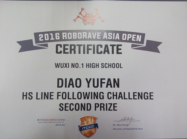 2016年2月20日-21日,在北京航空航天大学举办的RoboRAVE国际机器人大赛亚洲公开赛中,我校机器人社团学生组成的队伍荣获二等奖。同时因其独特的结构设计,在全场800多名选手中脱颖而出,被评为Russ Choice Award(主席选择奖),指导老师也获得最佳团队导师称号。参加比赛的同学有高一1班赵云天和刁煜凡、高一2班李翔、高一4班童科林。在此向获奖同学和指导老师表示热烈的祝贺!