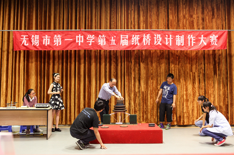 作为无锡一中的一项传统科技项目,第五届纸桥设计制作比赛在5月22日如期举行,并对全校进行了现场直播。