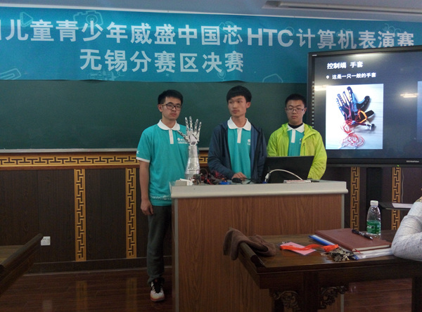 6月4日,在计算机表演赛无锡赛区创客项目比赛中,赵云天、朱政扬、陈坤杰、刁煜凡、黄松、李仁和获得一等奖;吴铭昊、薛震宇获得二等奖。获得一等奖的作品将有机会代表江苏赛区参加8月份在北京举行的全国决赛。在此恭喜各位获奖同学和指导老师!