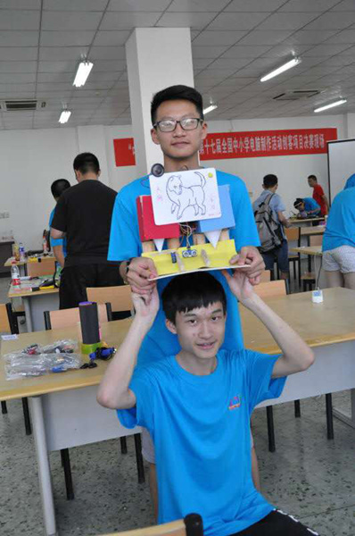 朱政扬同学心灵手巧、十分细心的同时,经常会萌生许多奇特的想法,他出色的动手能力使他能将灵感真正的表达出来,他也因此多次获得科技类大赛奖项。本次比赛中他需要与来自天南海北的陌生同学搭档,这样对学生综合能力的考验无疑增加了比赛的难度,但是朱政扬同学凭借自己的交际能力和团队合作意识成功冲破阻碍,将奖项揽入怀中。