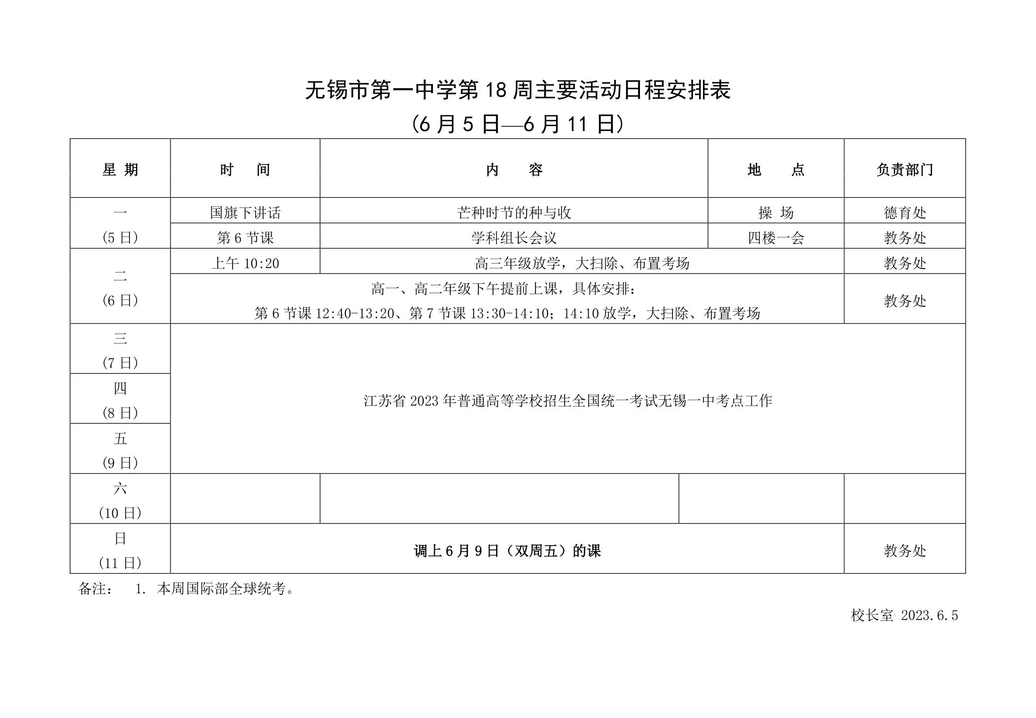 第18周主要活动日程安排表