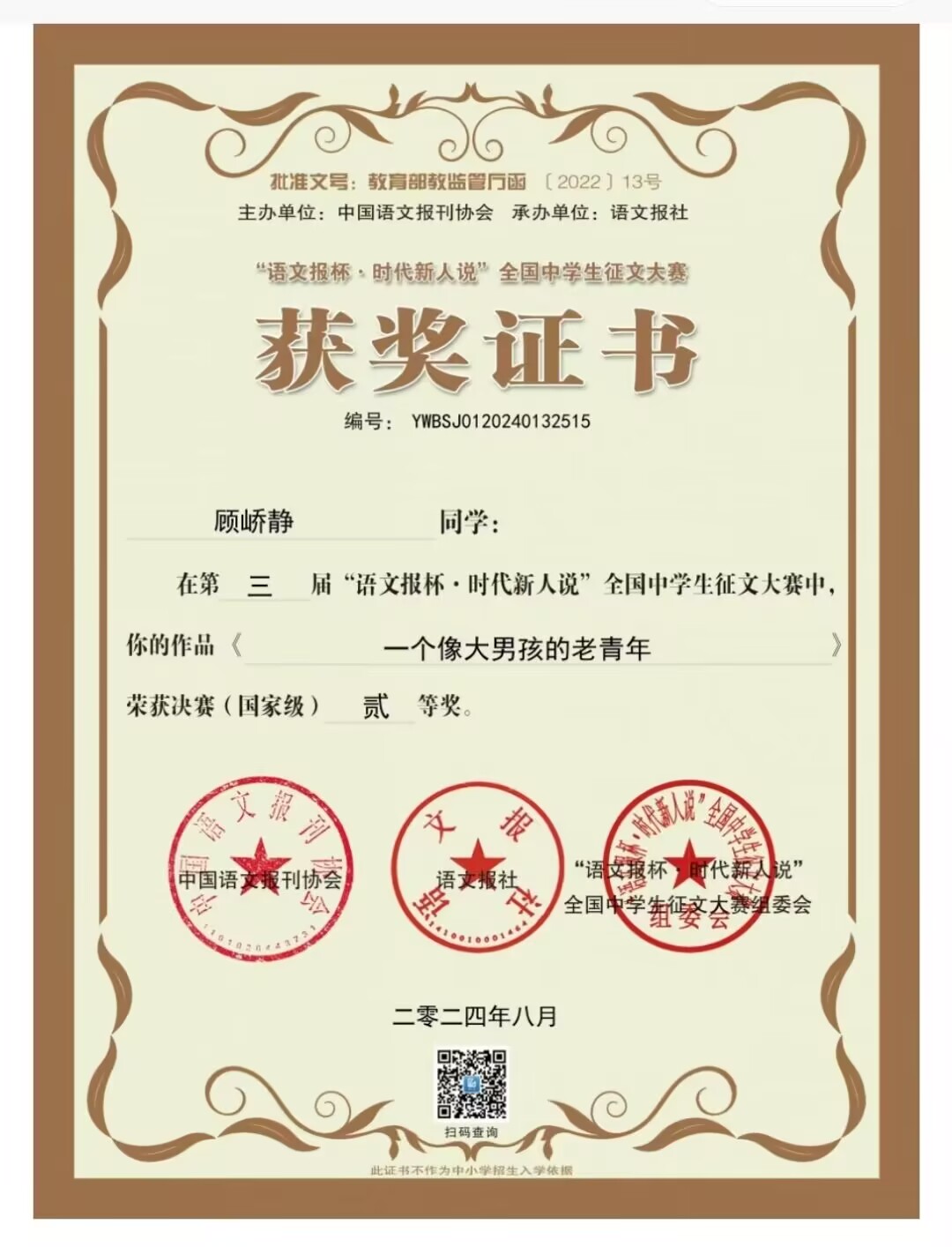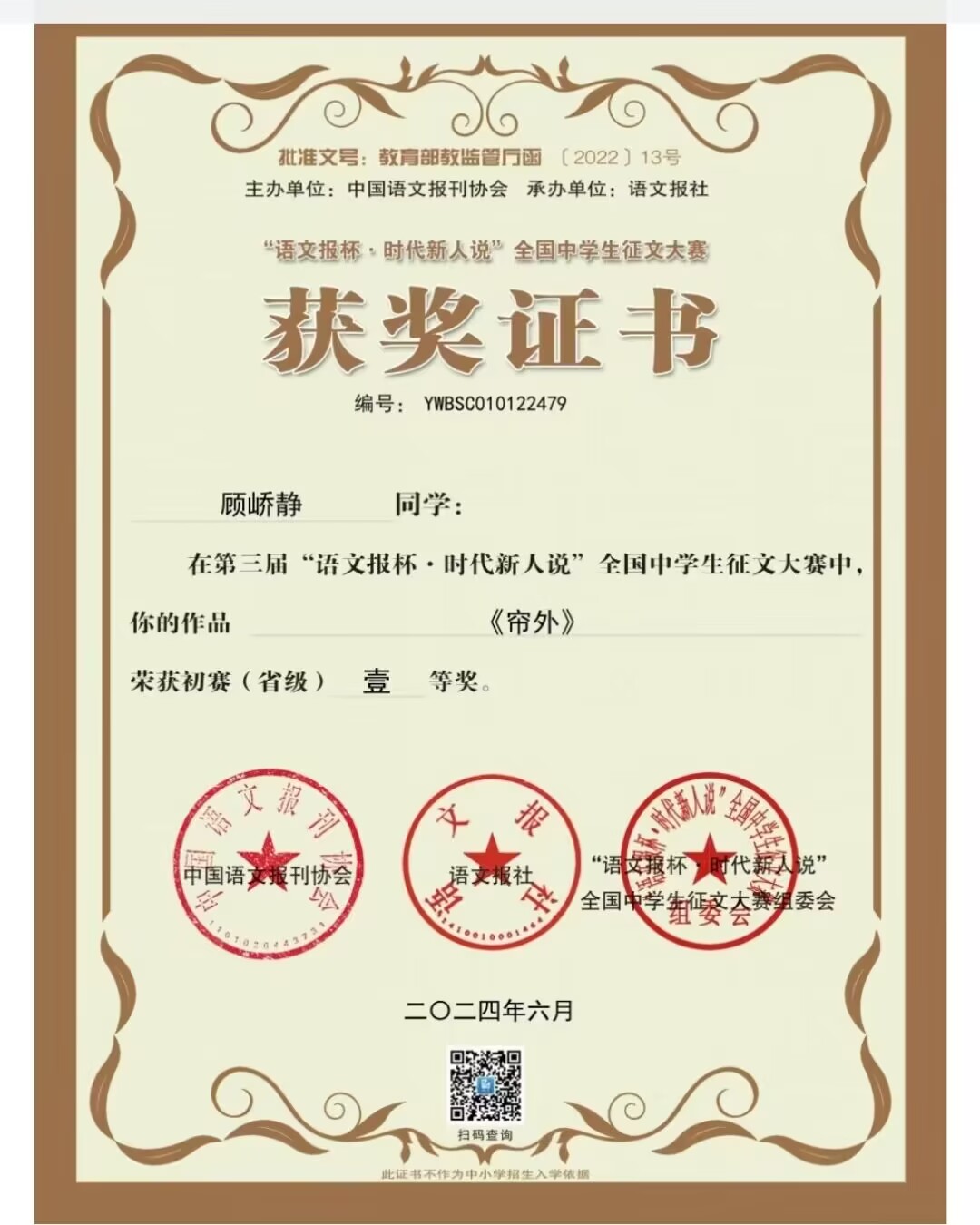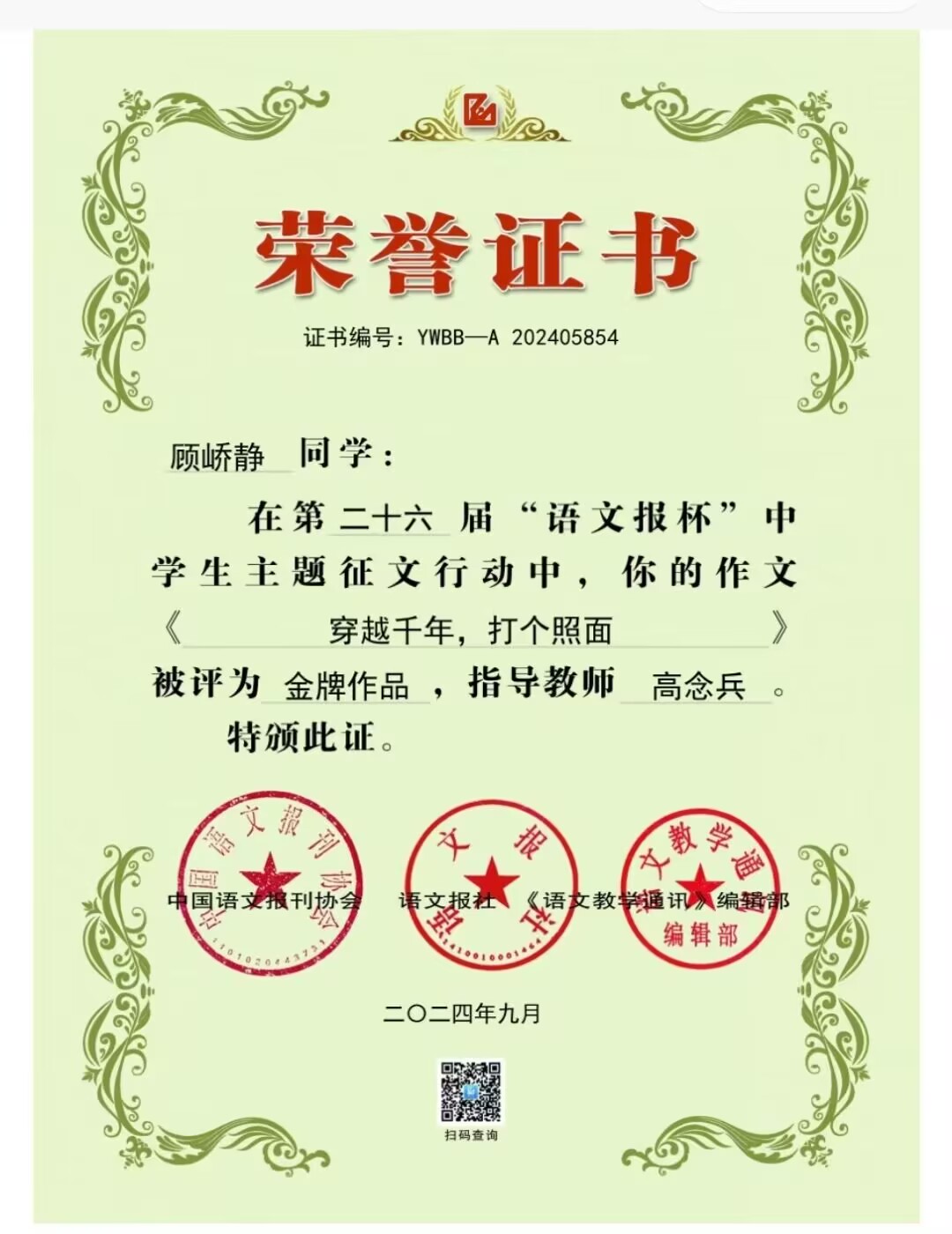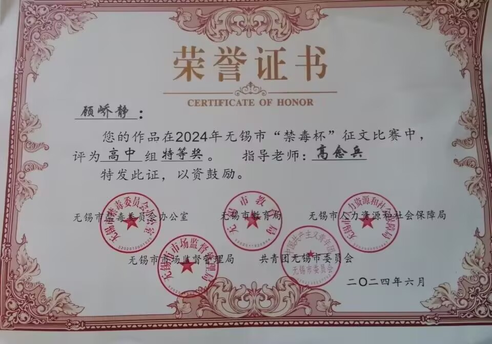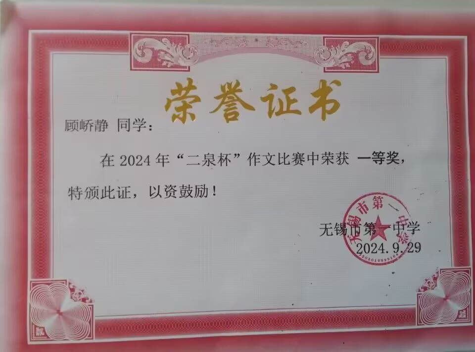 高三19班顾峤静扬州大学综评材料公示