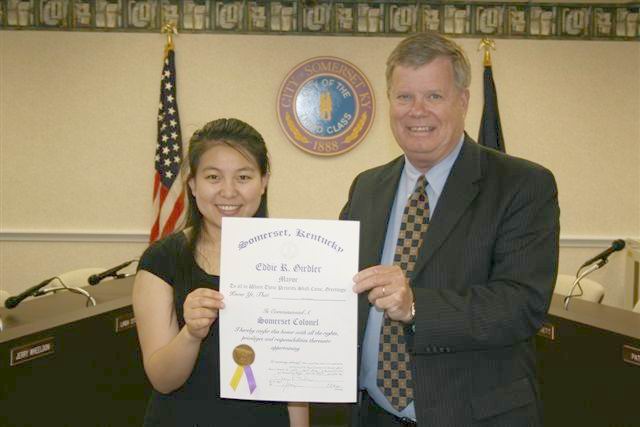 美国Somerset市长授予我校汉推教师朱敏娟荣誉市民证书