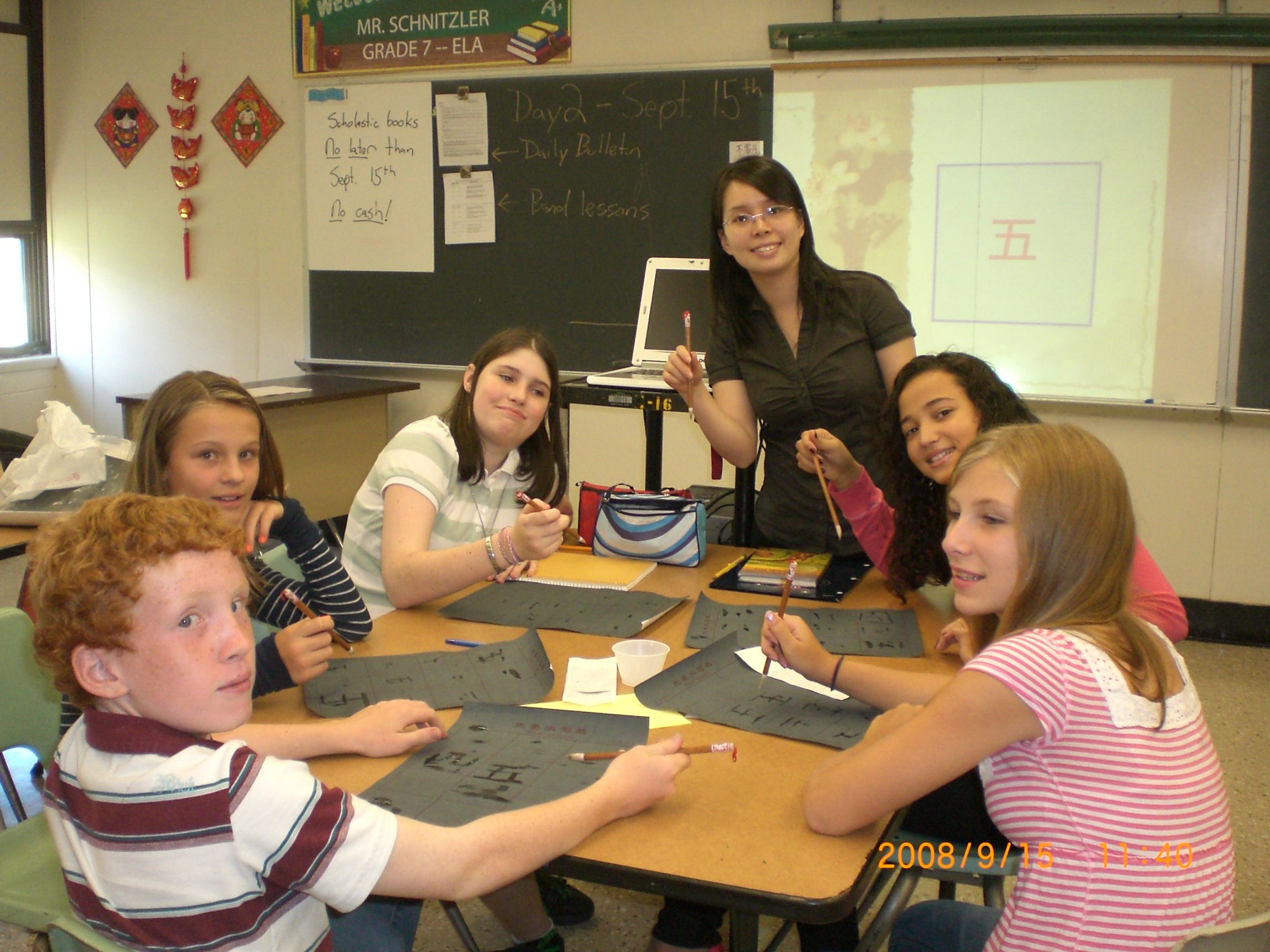 我校汉推教师蔡珺在美国开办孔子课堂,教授中国书法