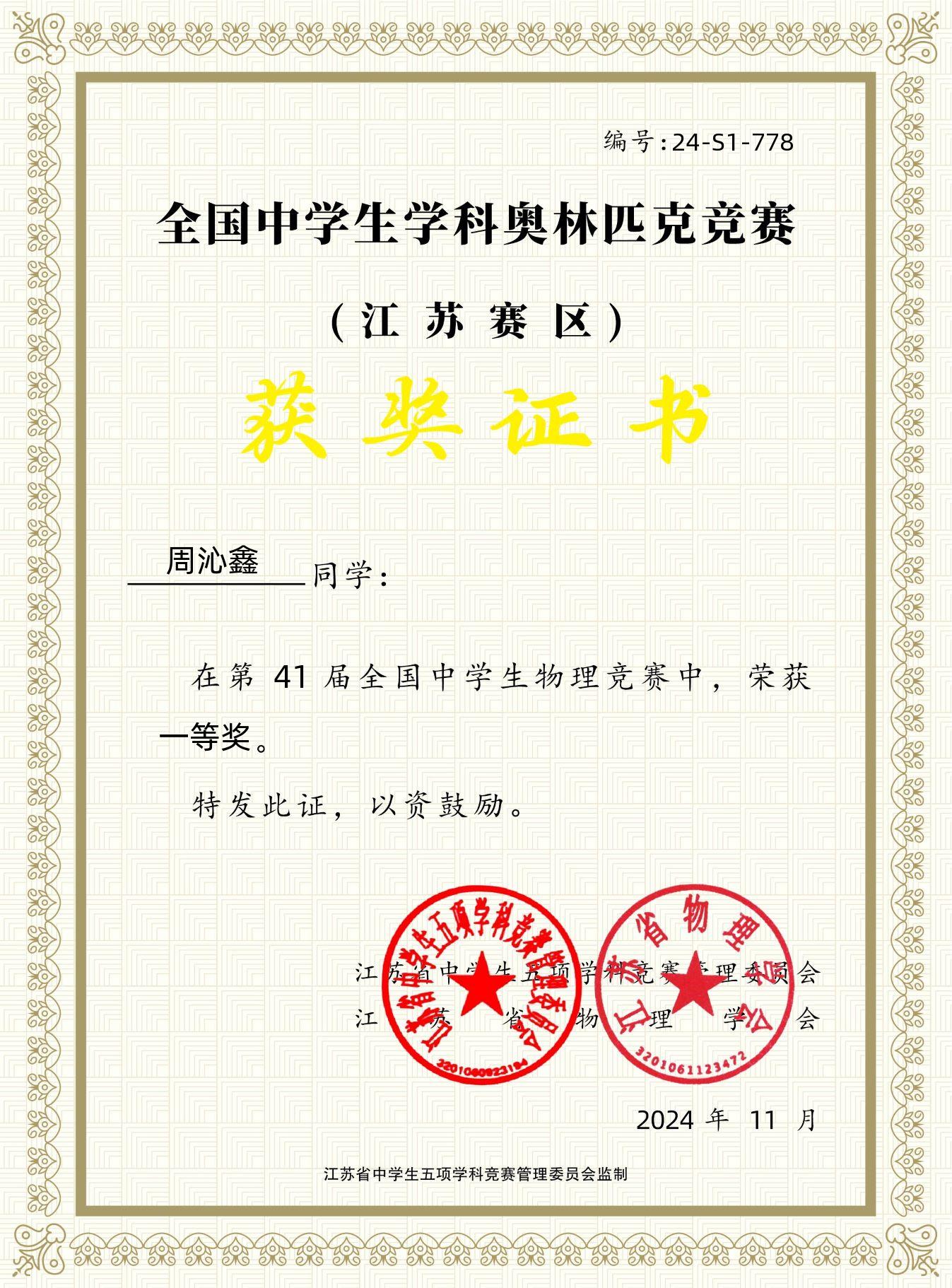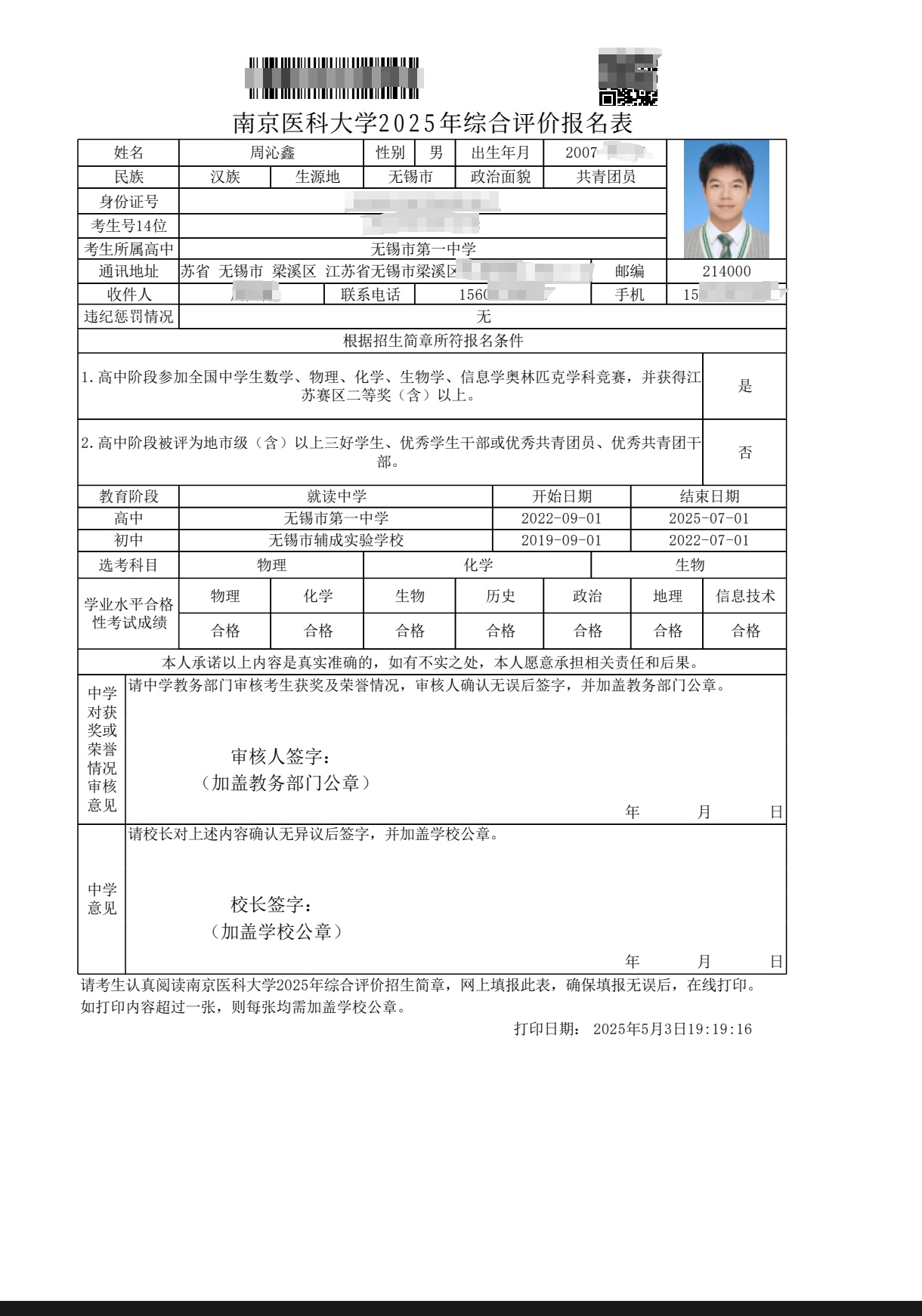 高三1班周沁鑫南京医科大学综评材料公示