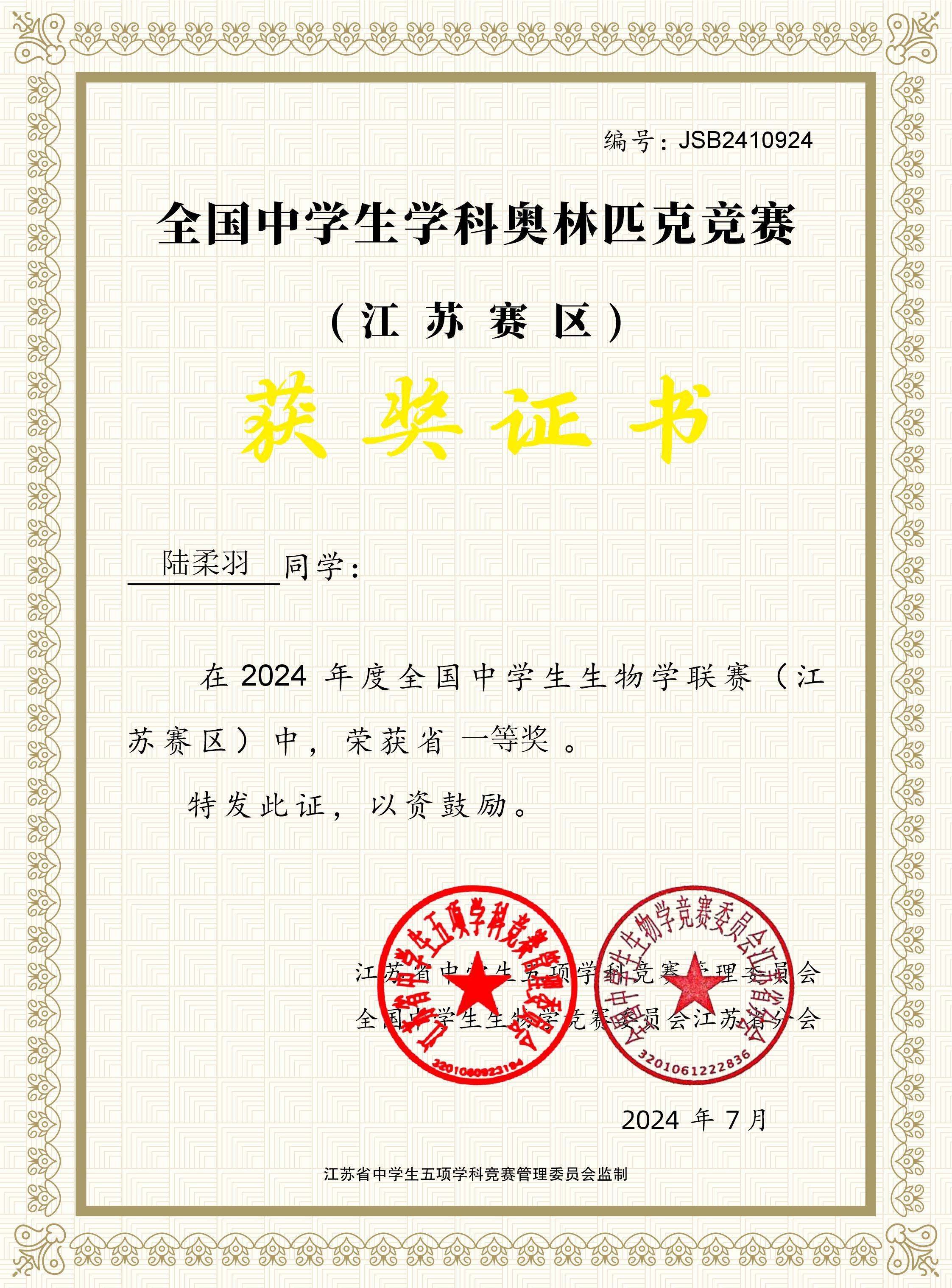 高三(2)班陆柔羽综评材料公示
