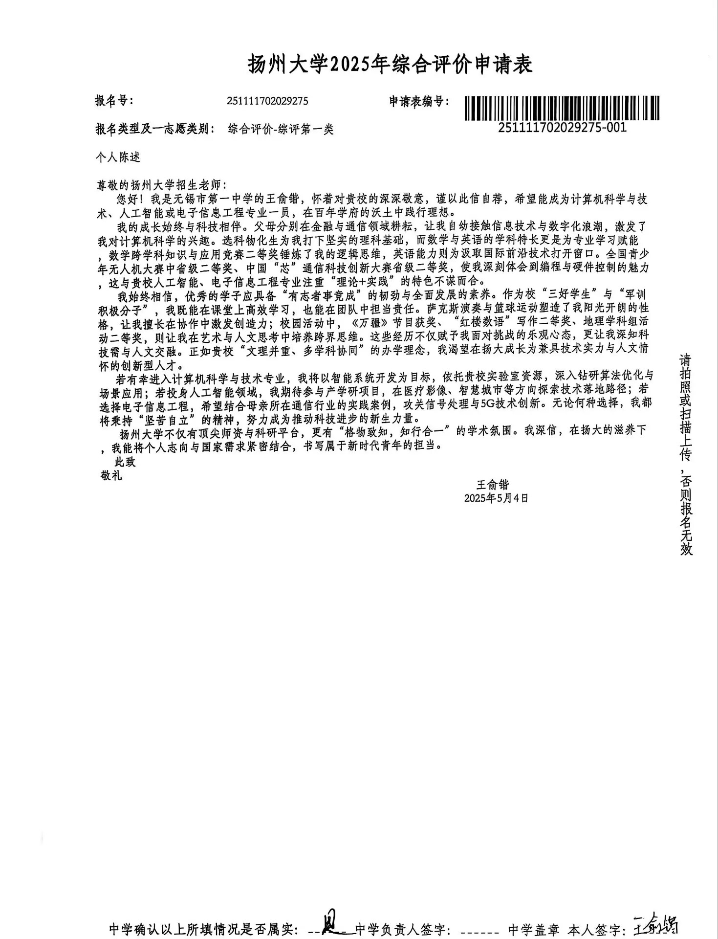 高三6班王俞锴扬州大学综评材料公示