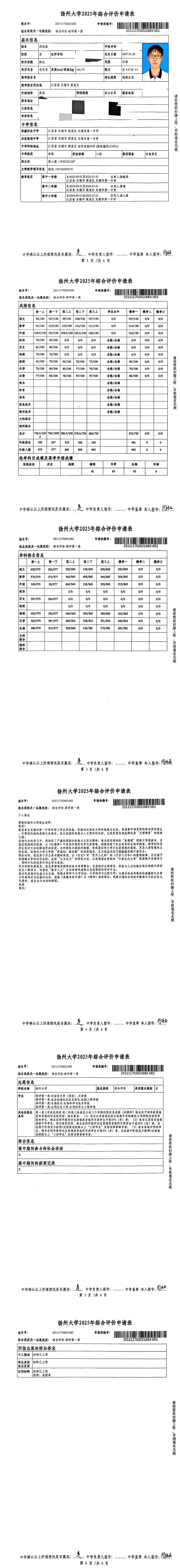 高三11班周浩磊扬州大学综评材料公示