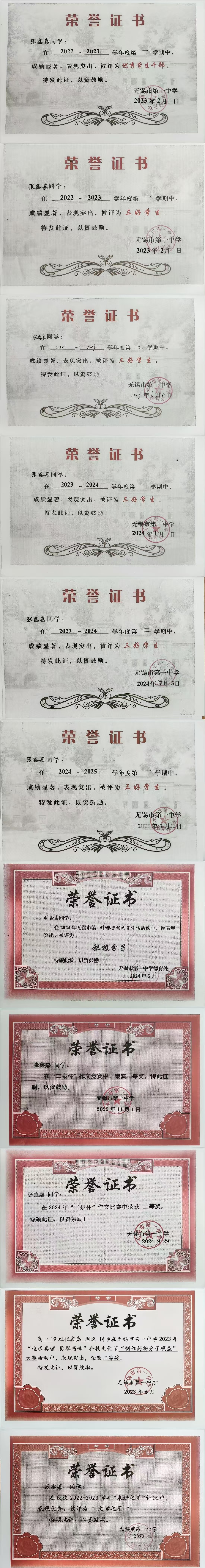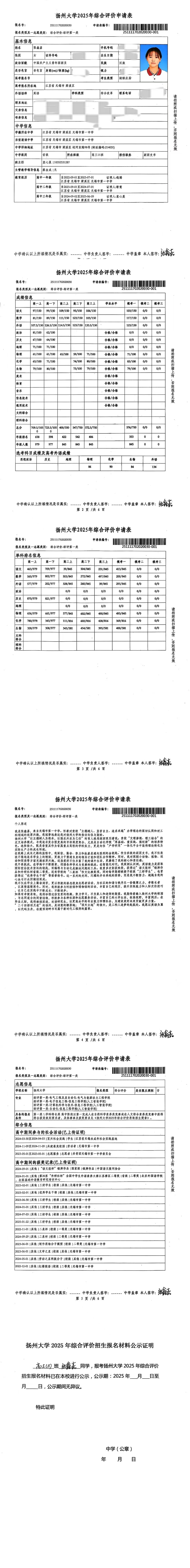 高三11班张鑫嘉扬州大学综评材料公示