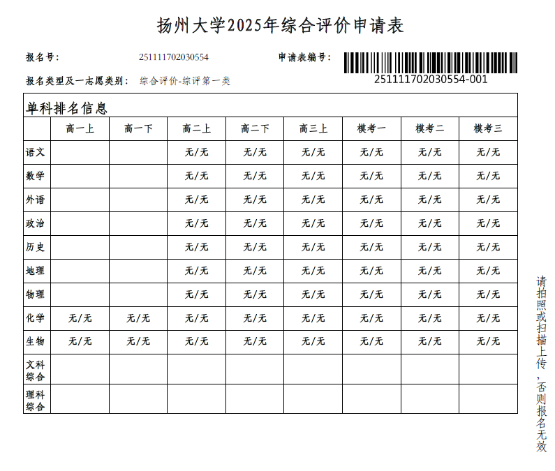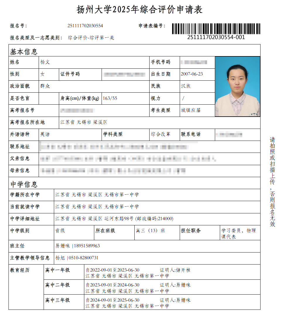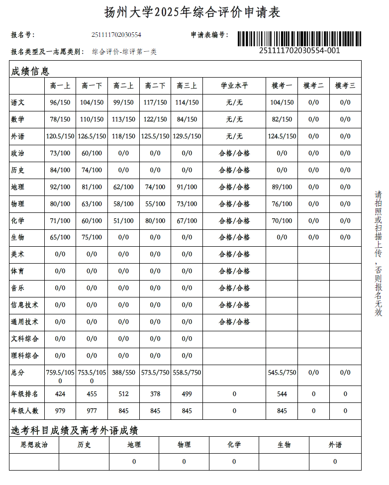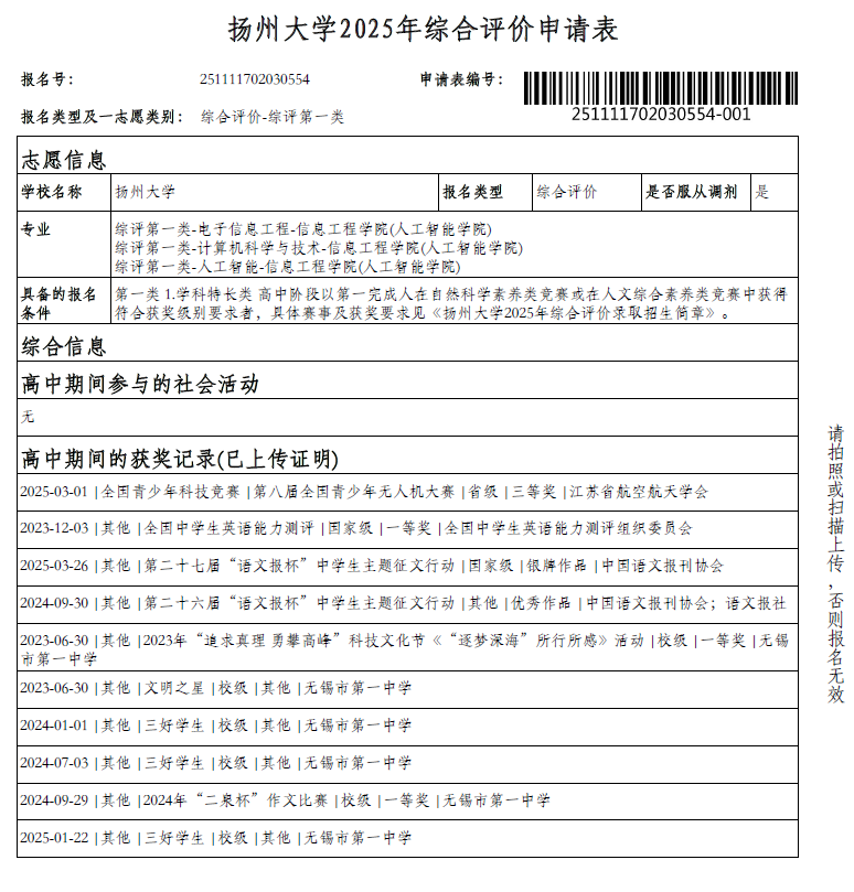 高三13班 杨文 扬大综评公示