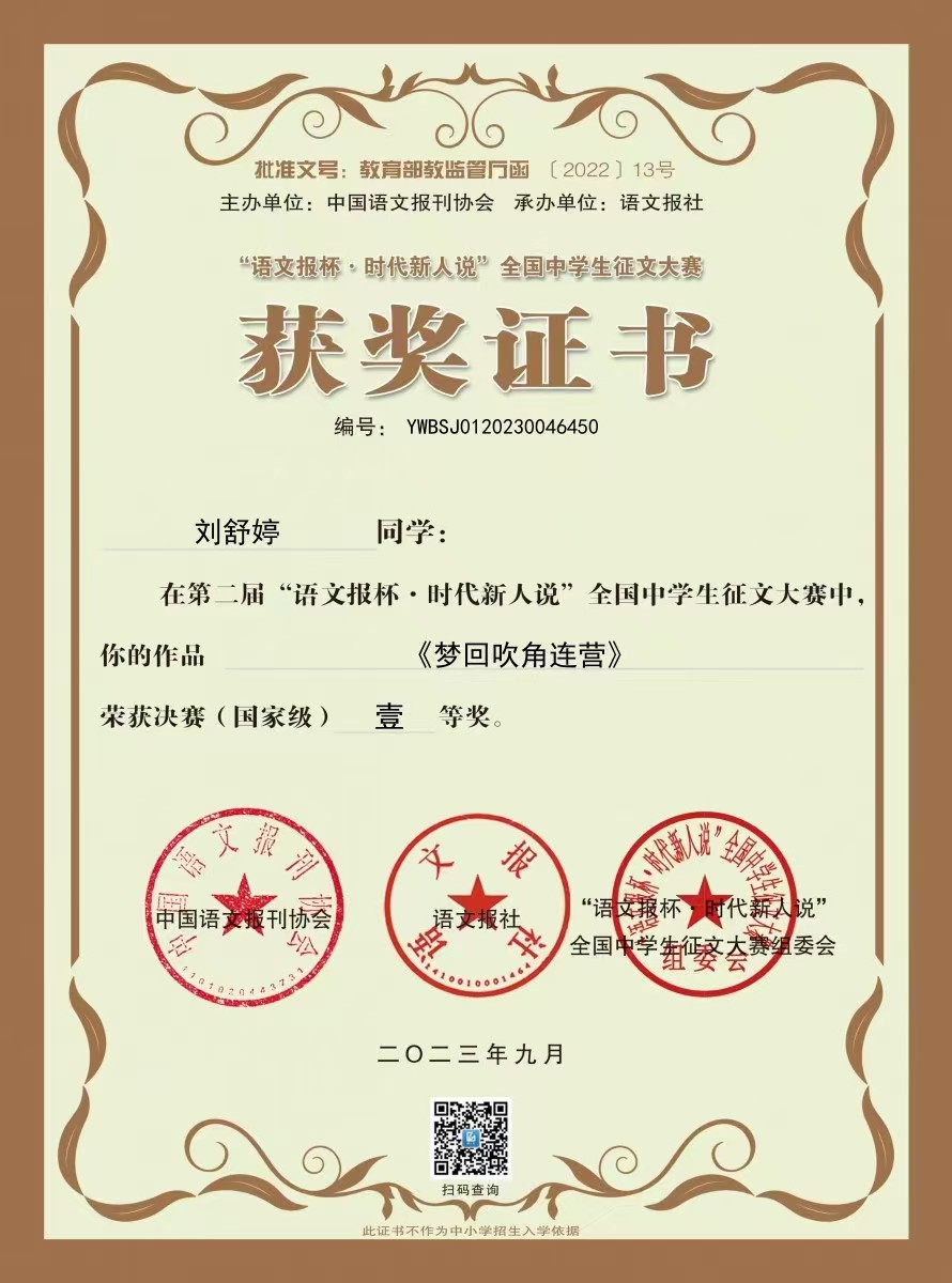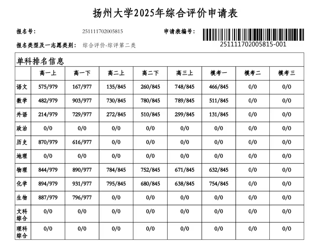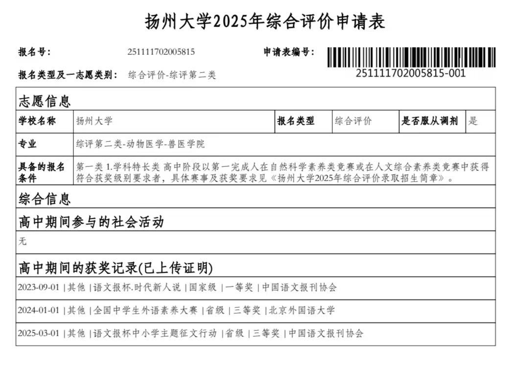 高三14班刘舒婷扬州大学综评材料公示
