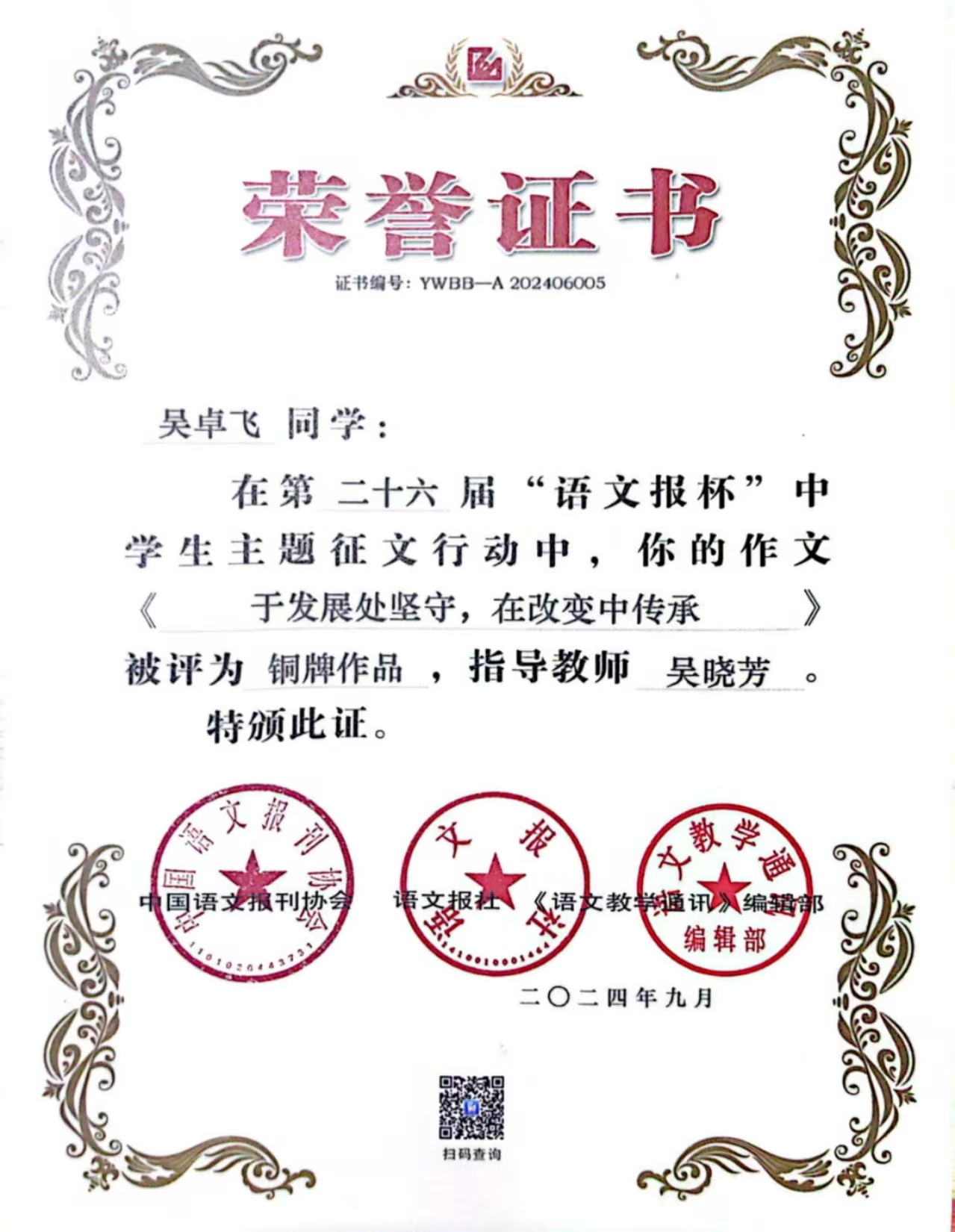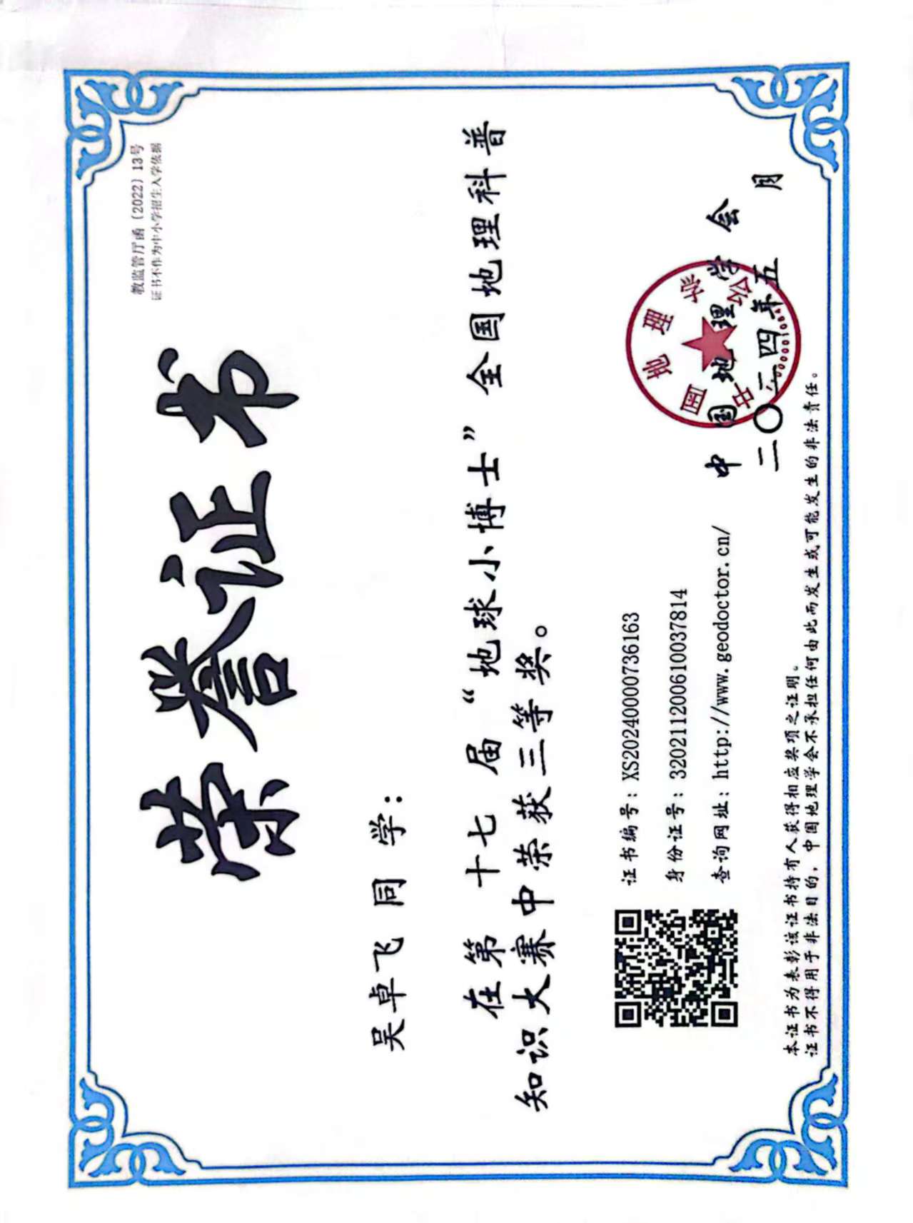 高三14班吴卓飞扬州大学综评材料公示