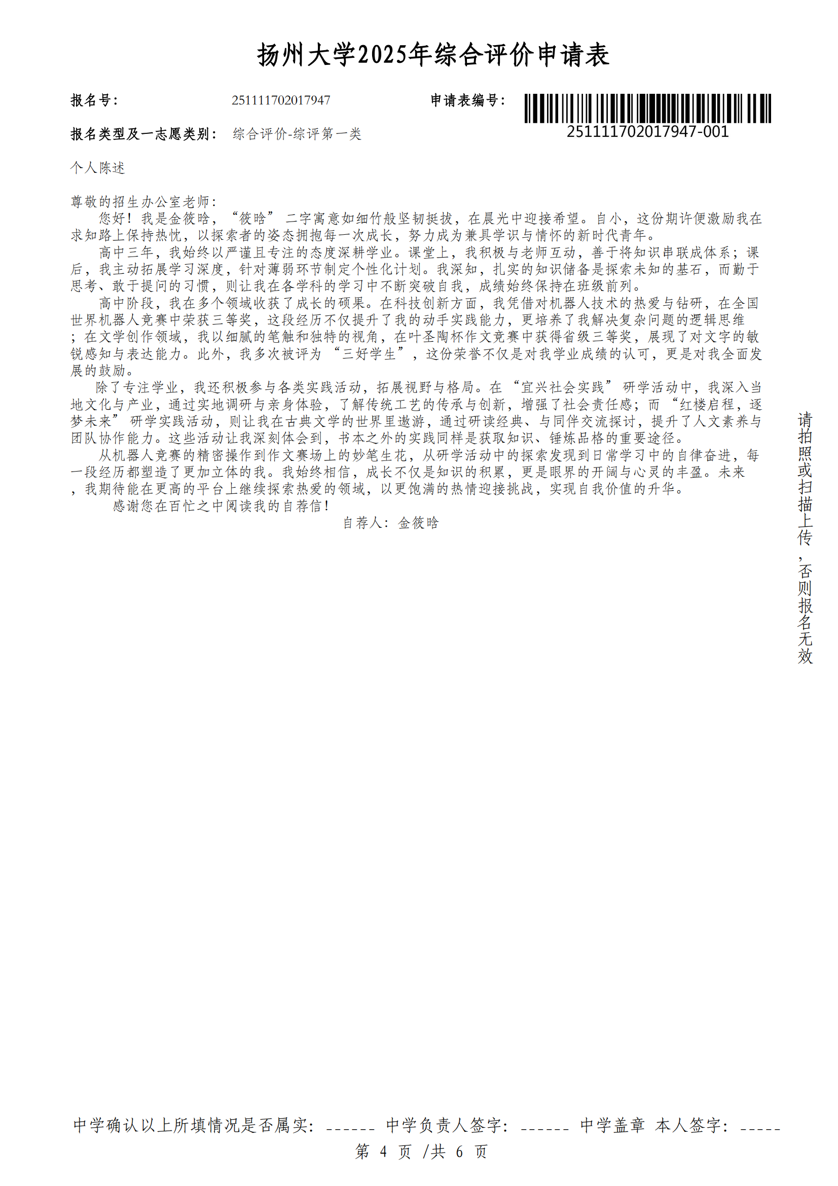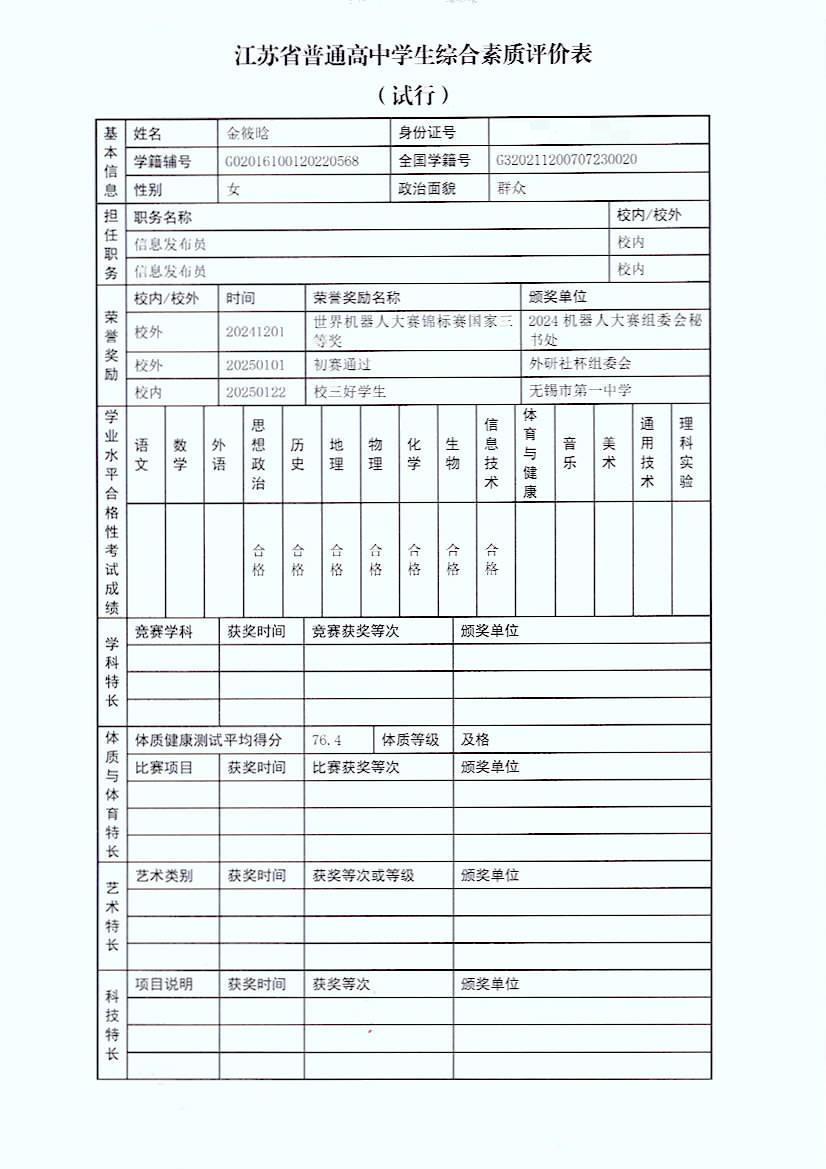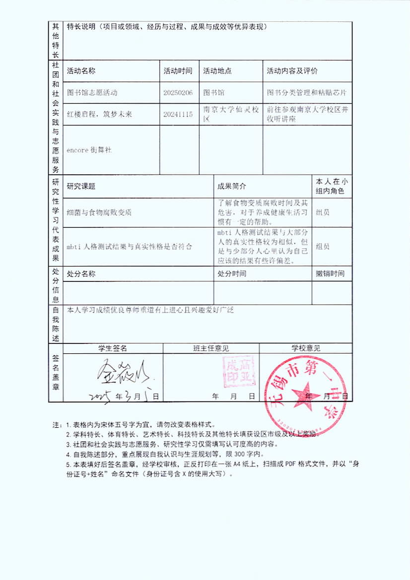 高三15班金筱晗扬州大学综评材料公示