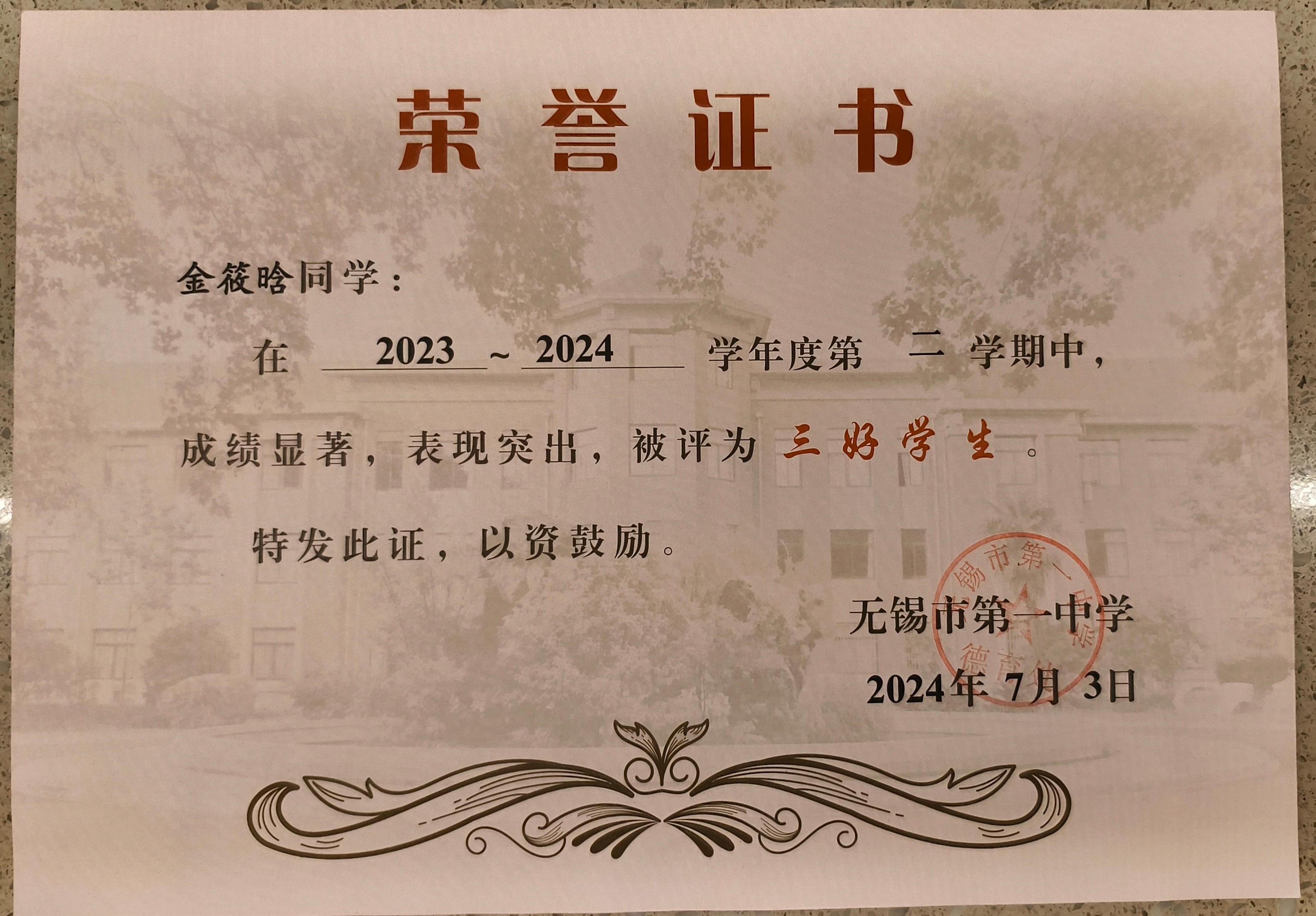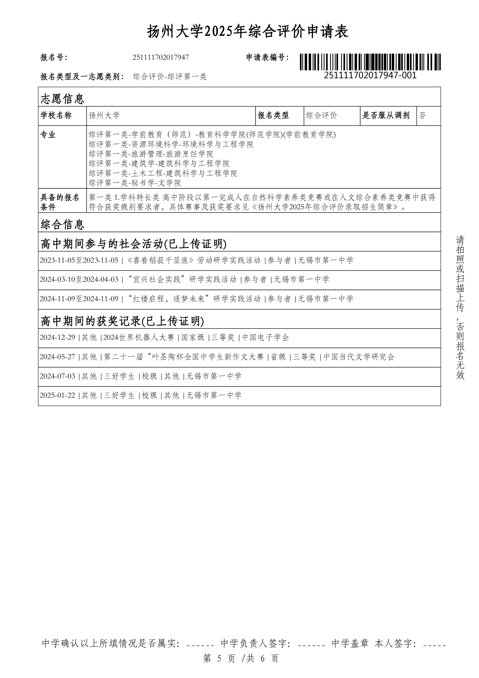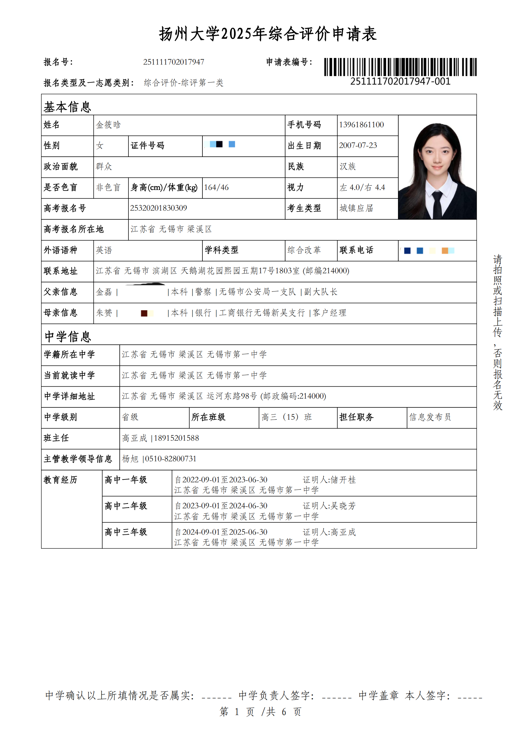 高三15班金筱晗扬州大学综评材料公示